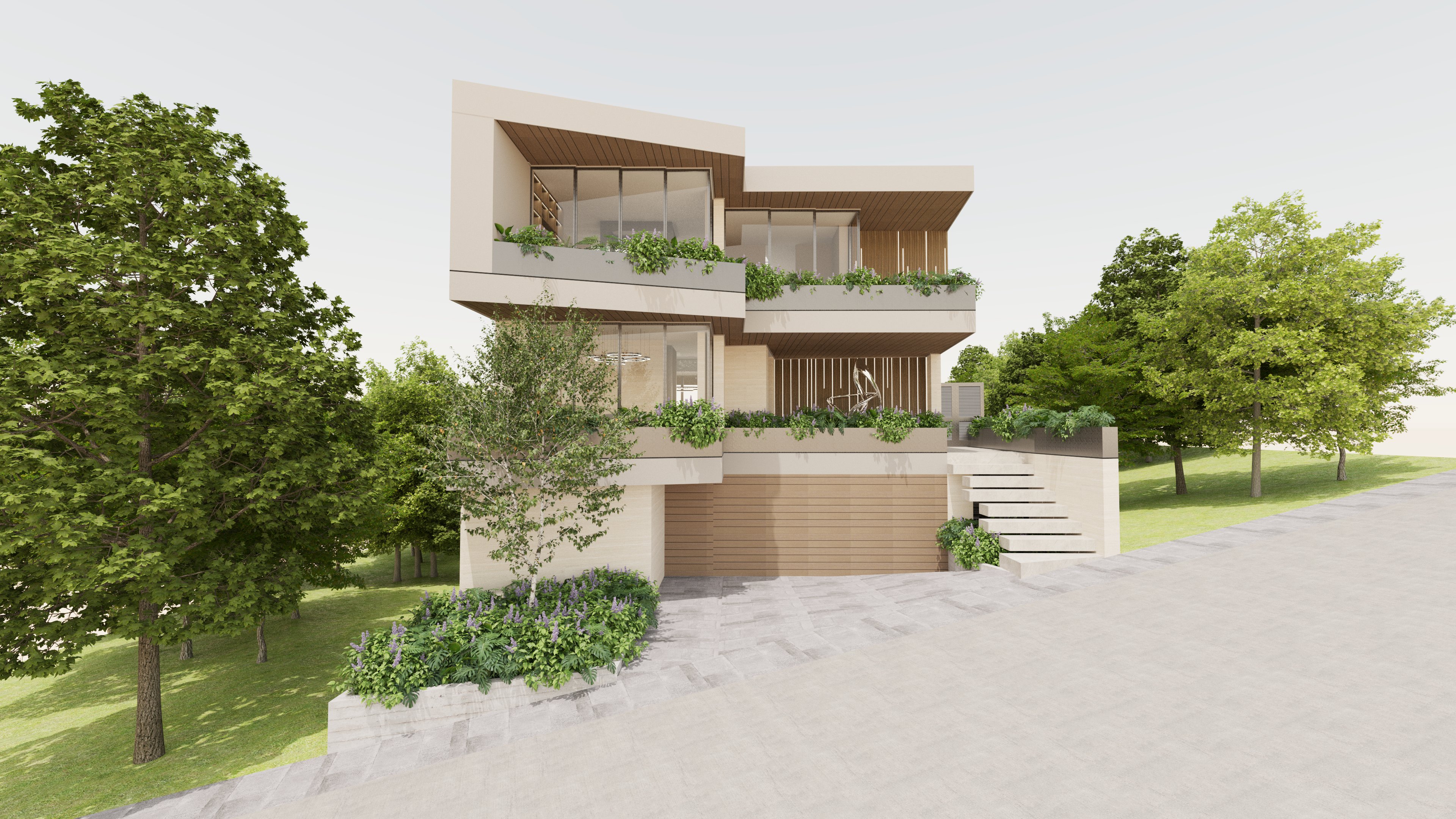 Residencia unifamiliar en Bosque Real donde la arquitectura contemporánea se integra al terreno y al paisaje, combinando espacios familiares, áreas sociales de entretenimiento y una conexión constante con la naturaleza.